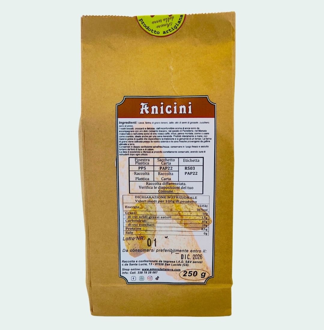 Realizzati con farina di grano coltivato presso la nostra azienda e uova fresche da galline allevate a terra in sede. Croccanti, gustosi, dall’inconfondibile aroma d’anice sono l’ideale per una sana merenda o un gustoso spuntino.