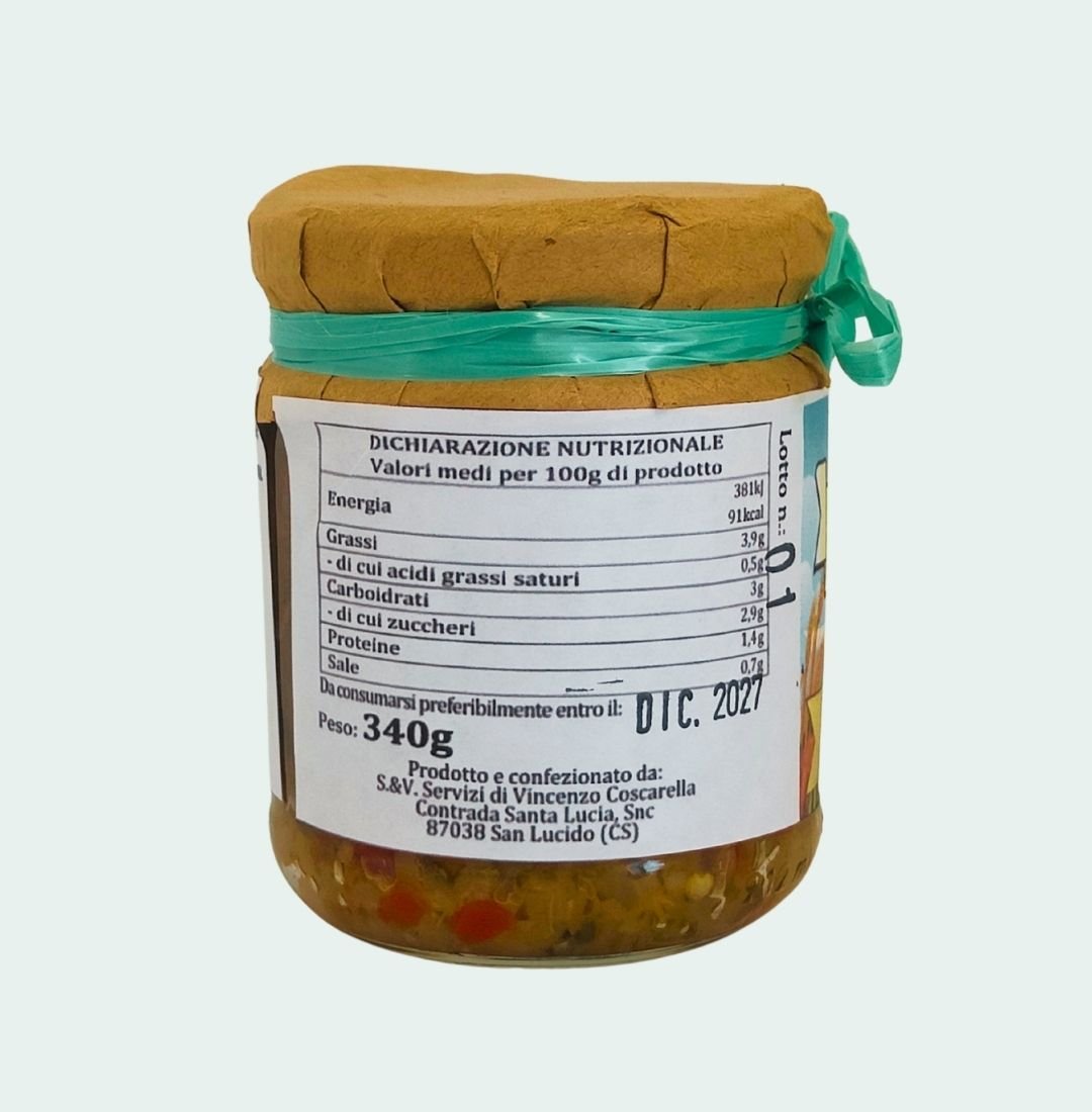 TRITO MISTO DI VERDURE IDEALE PER BRUSCHETTE O CONDIMENTO DI SUGHI, PRIMI PIATTI O RISI E PASTE FREDDE. SENZA PEPERONCINO.